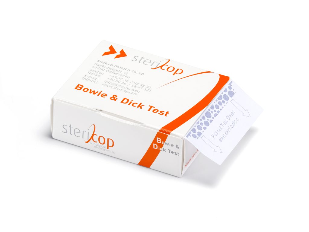 Mit dem Bowie & Dick Test von Stericop können Sie einfach überprüfen, ob Ihr Sterilisator die notwendigen Parameter erfüllt, um eine ausreichende Sterilisationswirkung zu gewährleisten. Ein solcher Leistungstest ist bei der Dampfsterilisation nach DIN EN ISO 17665 täglich durchzuführen, sofern das Verfahren die Luftentfernung aus dem Medizinprodukt einschließt (z.B. fraktioniertes Vorvakuum). Hierbei ist es irrelevant, welche Kammergröße Ihr Sterilisator aufweist.